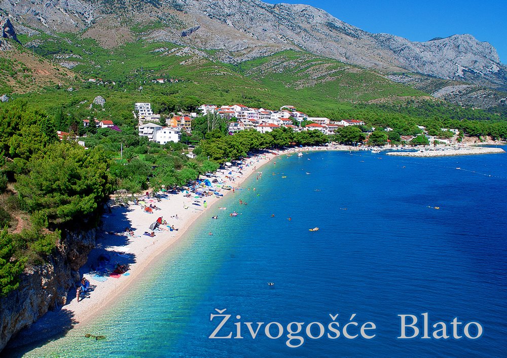 Živogošće is a coastal settlement in the Makarska Riviera. It consists of three smaller settlements - Blato, Porat, and Mala Duba, which are connected by a promenade along the sea. Živogošće has been inhabited since Illyrian and Roman times, as evidenced by the Illyrian mounds on top of the Suzine hill. It was first mentioned as a settlement in the middle of the 13th century.